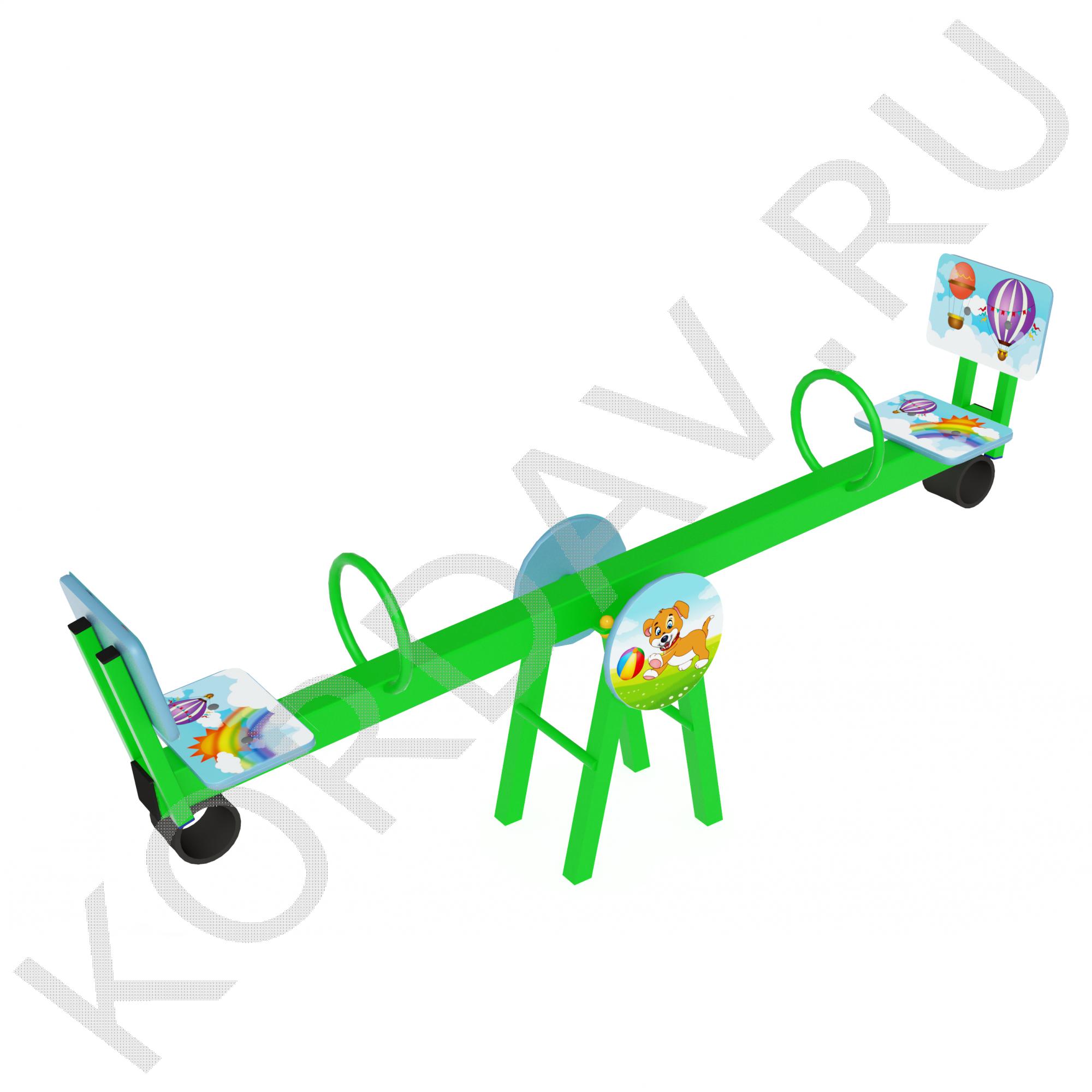 Качели-балансир малая предназначена для детей от трёх до пяти лет. Опора качелей сделана из труб 42мм и металлической полосы шириной 40мм, вала подшипников и втулок. Бока опоры облицованы влагостойкой фанерой.