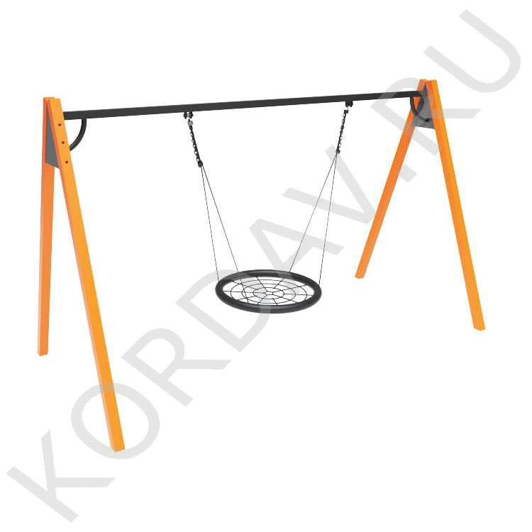 Качели Гнездо состоят из стойки, перекладины, подвеса и сиденья.
